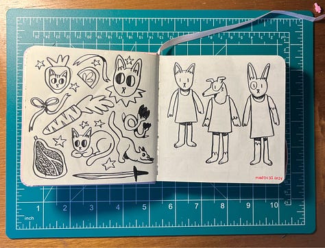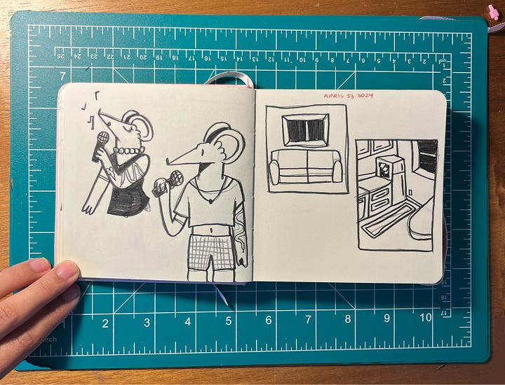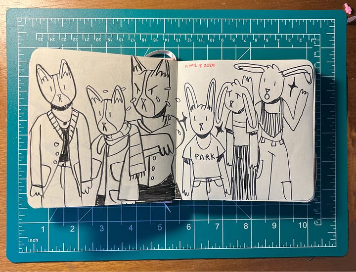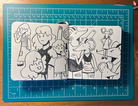 One of my New Years Resolutions for 2024 was to get more into drawing traditionally, because as much as I love digital, the tactility of a sketchbook was calling to me. It’s also so much more convenient for on-the-go carry than a laptop-sized iPad. So here are a few selections from the last few weeks of sketching :D